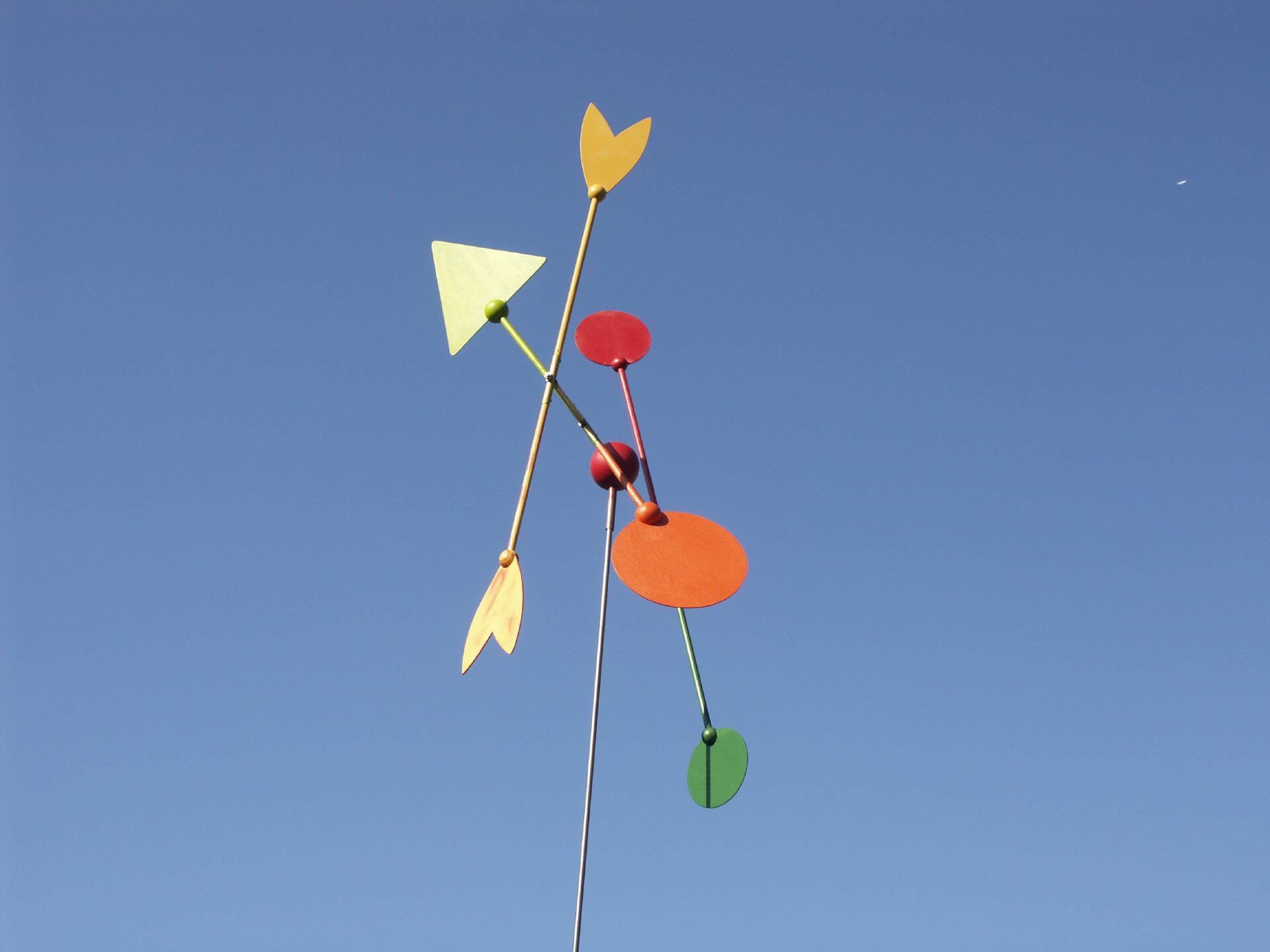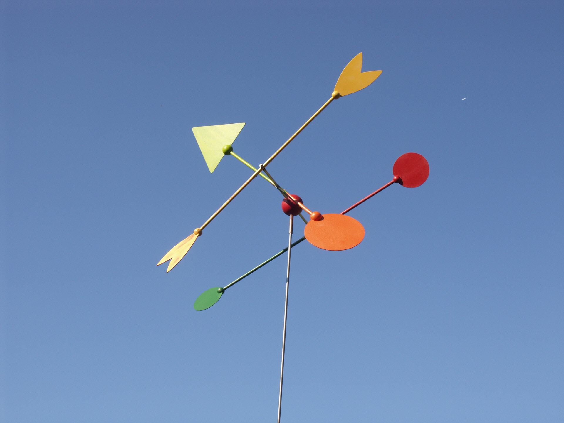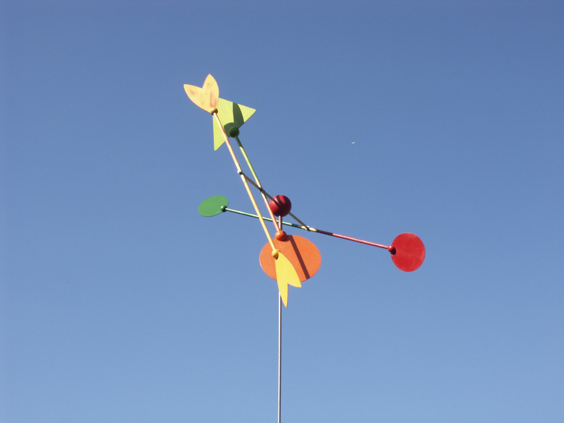 Dieses Windspiel können Sie sowohl in bunten Farben, als auch etwas zurückhaltender in Natur oder in nur einer Farbe bekommen. Es hat 3 Flügel, die sich beim kleinsten Windhauch in Bewegung setzen. Das Windspiel ist aus wetterbeständigem Flugzeug-Sperrholz und Kiefer/Buche gefertigt, die Gleitlager sind aus Edelstahl.