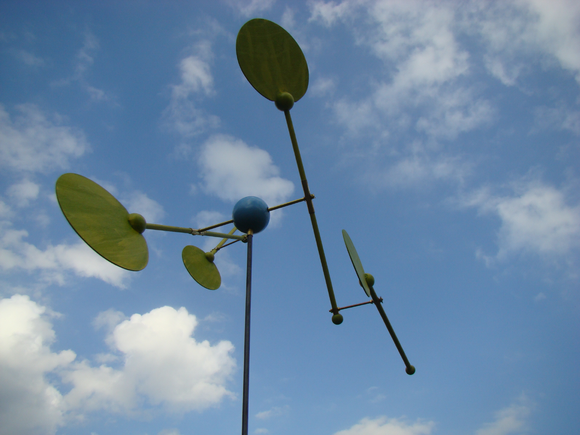 Da das Windspiel an mehreren Achsen läuft, benötigt es deutlich mehr Wind, als die Anderen.